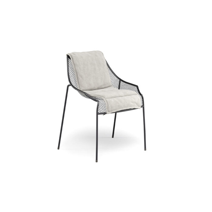 The idea underlying Heaven project is that of lightness derived from forms emerging from hollow spaces bordered by interweaving lines. The thin, woven steel frame is the distinctive feature of a collection marked by well-proportioned lines and overall harmony. Steel chairs paired with transparent glass tops lighten the table surfaces, lending them almost an intangible aspect.