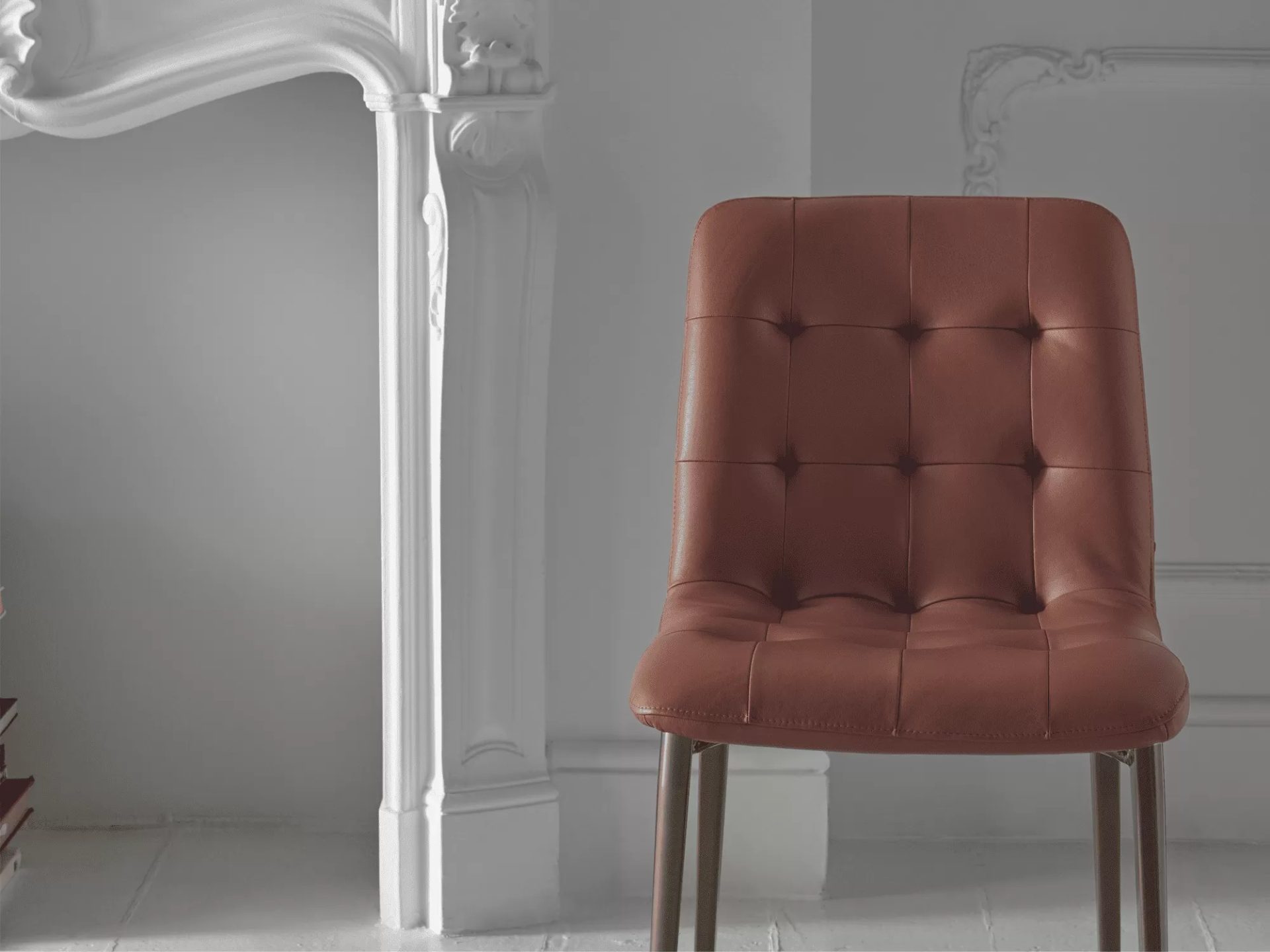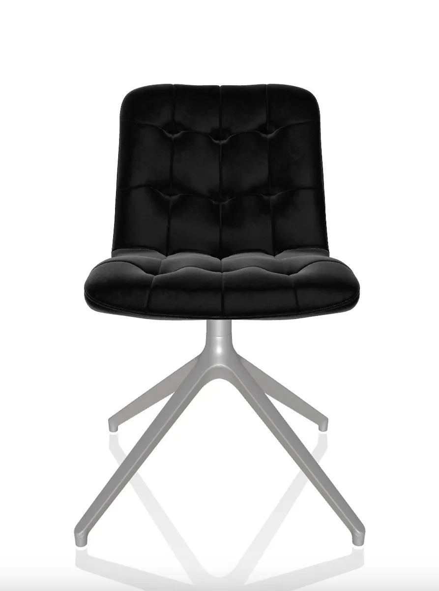 Chair with metal frame and swivel chair with die-cast aluminium frame. Upholstered and covered shell in Premium Technical Velvet, tessuto Nordic, Pure Virgin Wool, Velvet and Premium Leather.