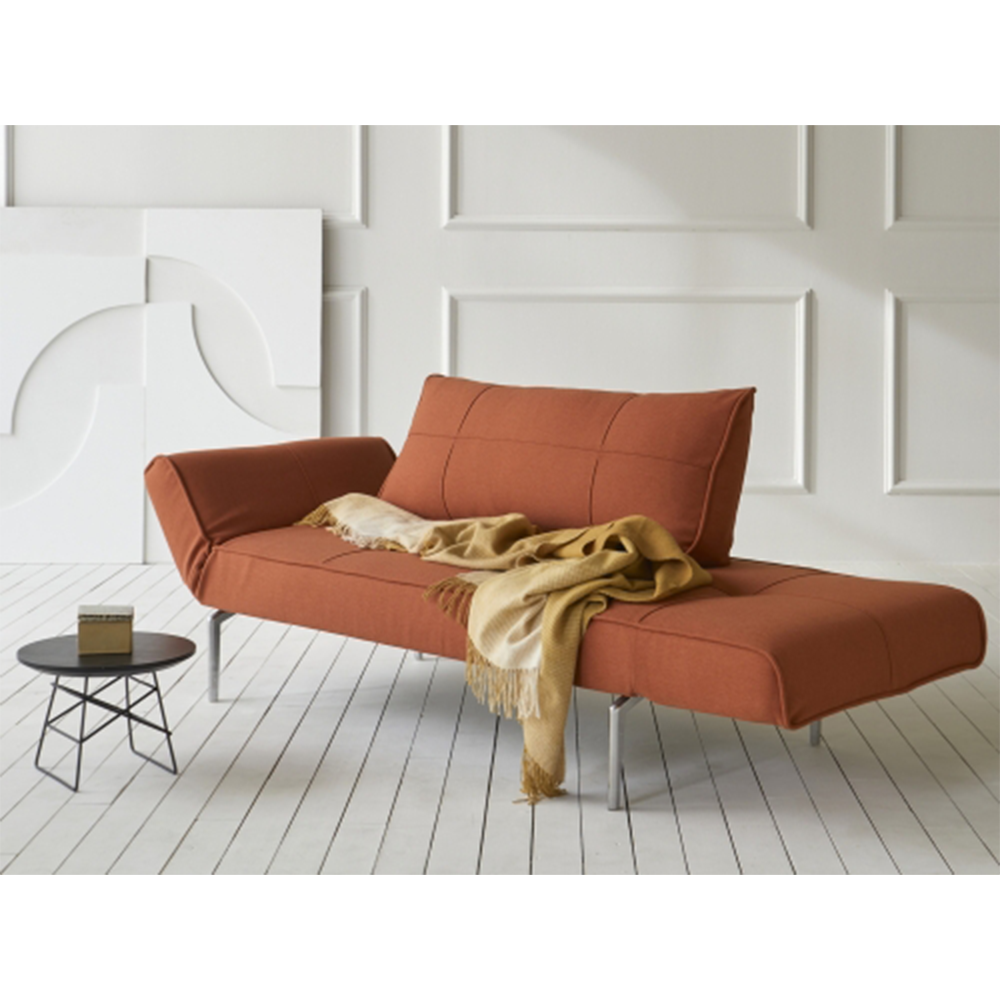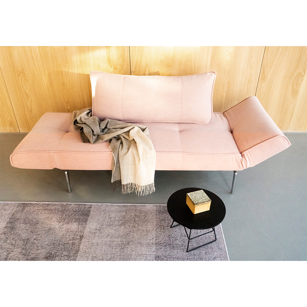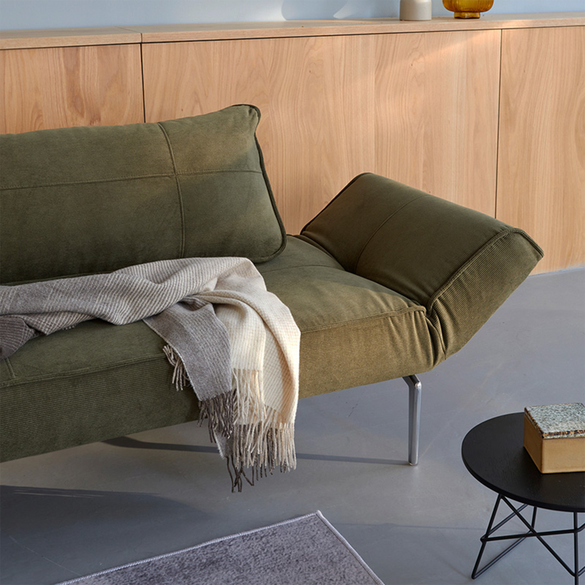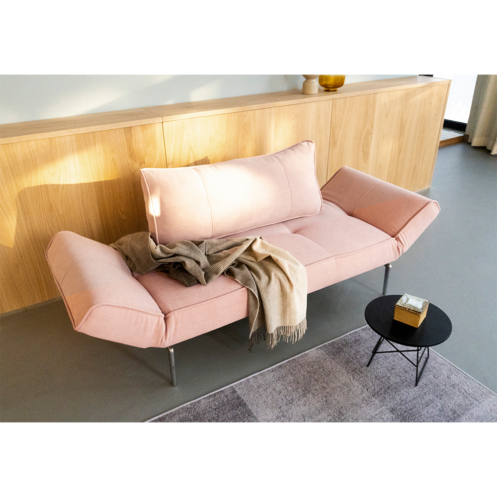 The Zeal daybed is an adaptable and compact daybed through its three steps of side elevation. Independently of each other, it functions as either armrests or head elevations. Its pocket spring base creates a comfortable sit, lounge, and sleep comfort. It proves its worth in small and large rooms alike, as it stands elegantly alone in the living room, against the wall in the hall, or in the extra room as a single sleeper for an overnight guest. A flexible, compact piece of furniture that provides an international, modern presence with legs in aluminum, clear seams, and adjustable wings featuring three levels in each side.