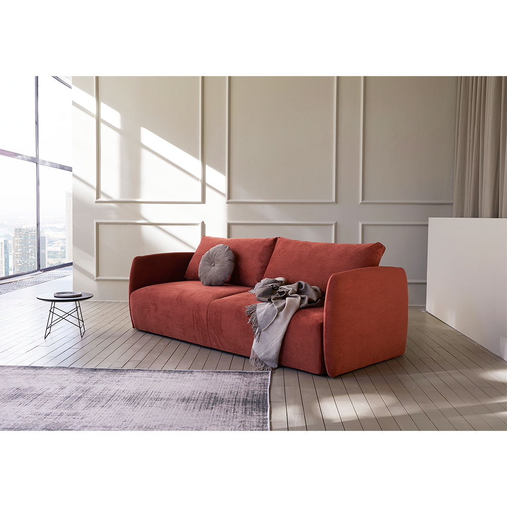 The design of Salla features a soft and rounded No-zag mattress that provides a padded, soft comfort while the large back cushions creates an extended comfort for seating, lounging and sleeping. Great comfort in combination with upholstered arm rests makes Salla perfect for a relaxed lounging experience.