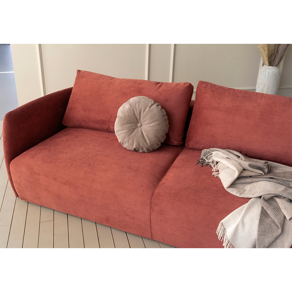 Further, Salla holds a large storage space hidden beneath the seat for storing bedding, cushions or maybe just unsightly possessions. The spacious storage box is a practical benefit to its functional form. A heavy, yet feminine upholstery design for compact living.