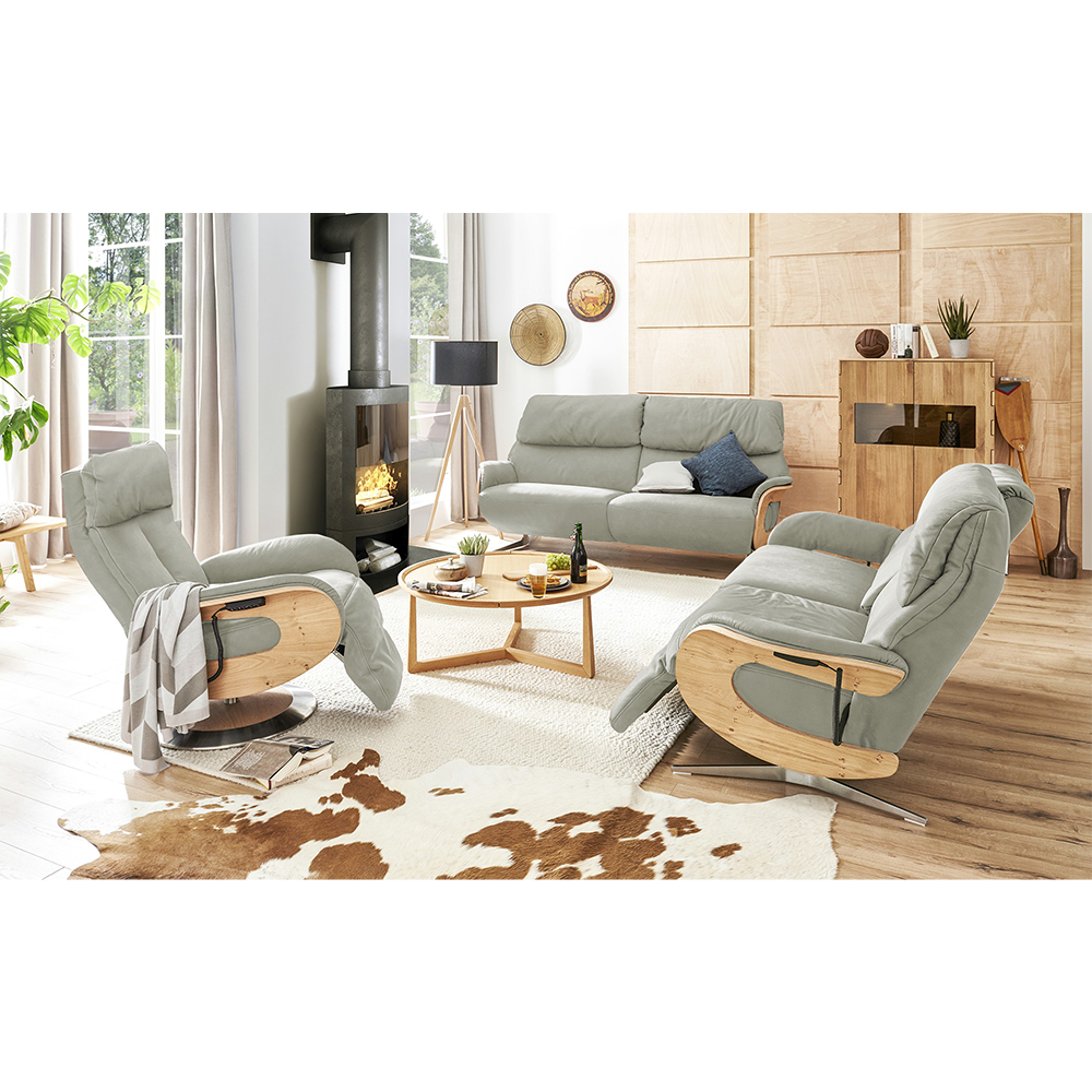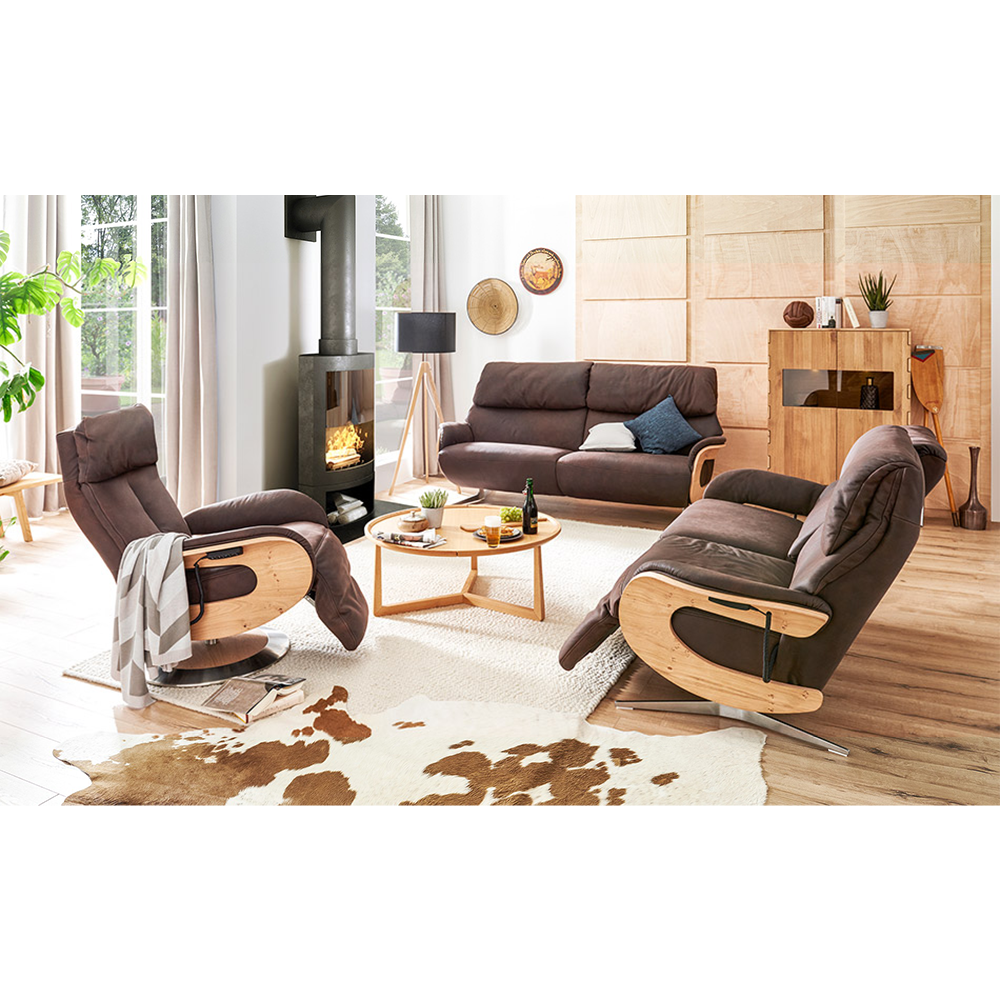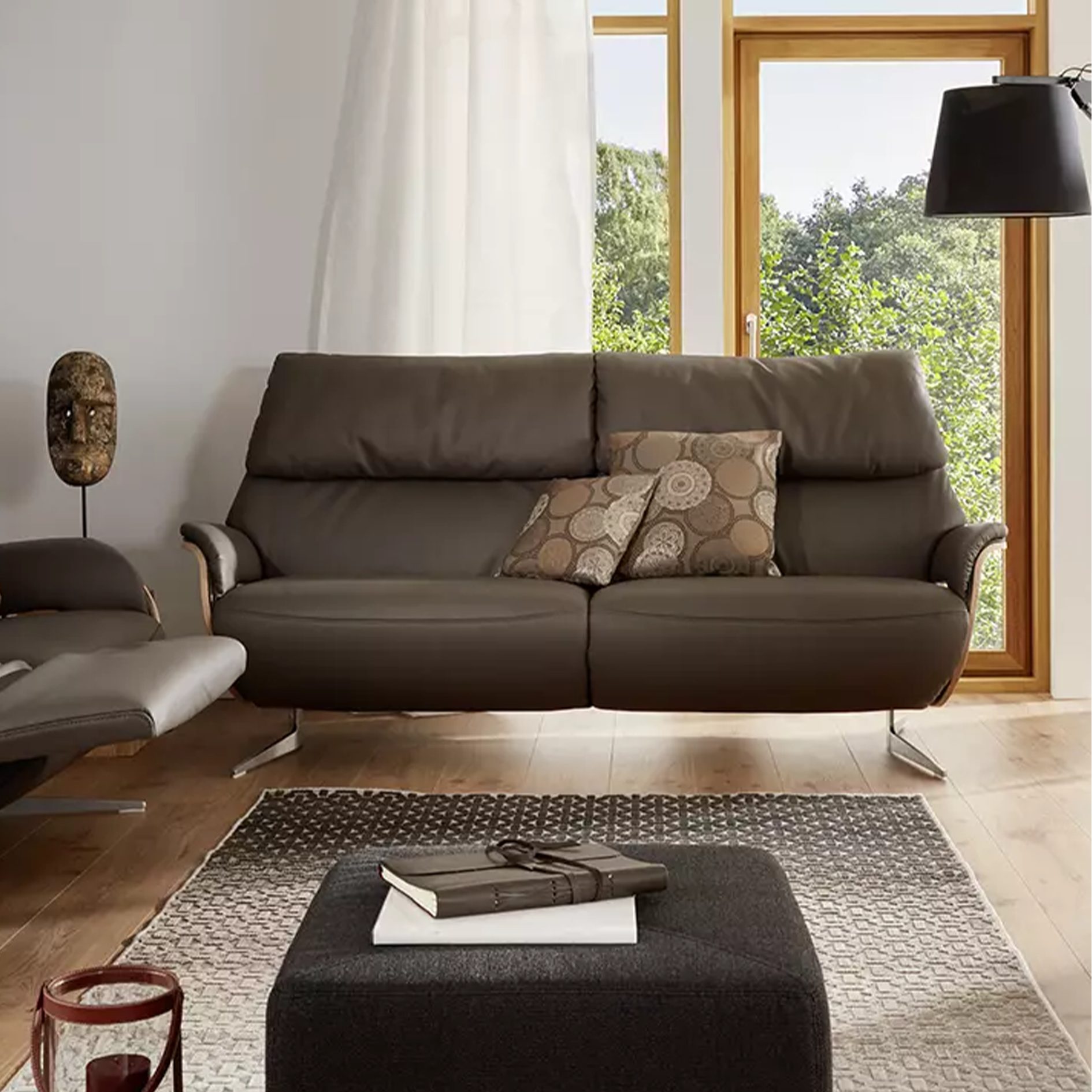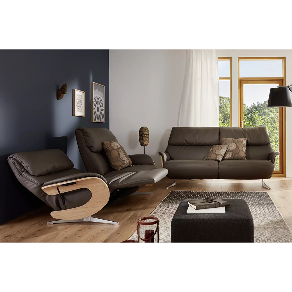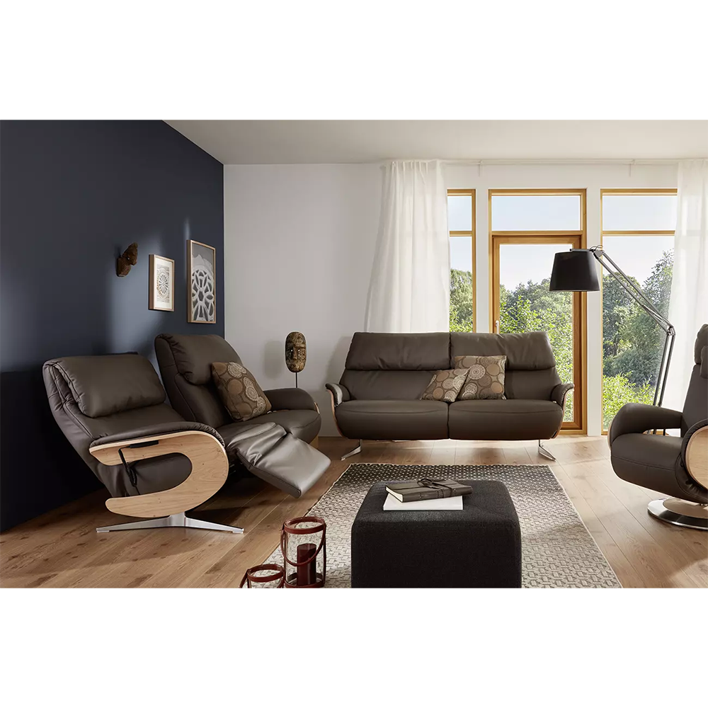 The EASY COMFORT sofa has a relaxation system that lets you place it almost against the wall without having to give up the many adjustment possibilities. The footrests and backrests are individually adjustable and the armrests follow the backrest automatically. The electric adjustment is done comfortably thanks to a remote control and optionally an external rechargeable battery. Practical: A magnet is located under the armrests so that your remote control is always within reach. On many models of the EASY COMFORT series, you have the option of having your sofa fitted with a power socket, USB socket, charger or glass holder. You can also adapt the appearance individually to your taste,