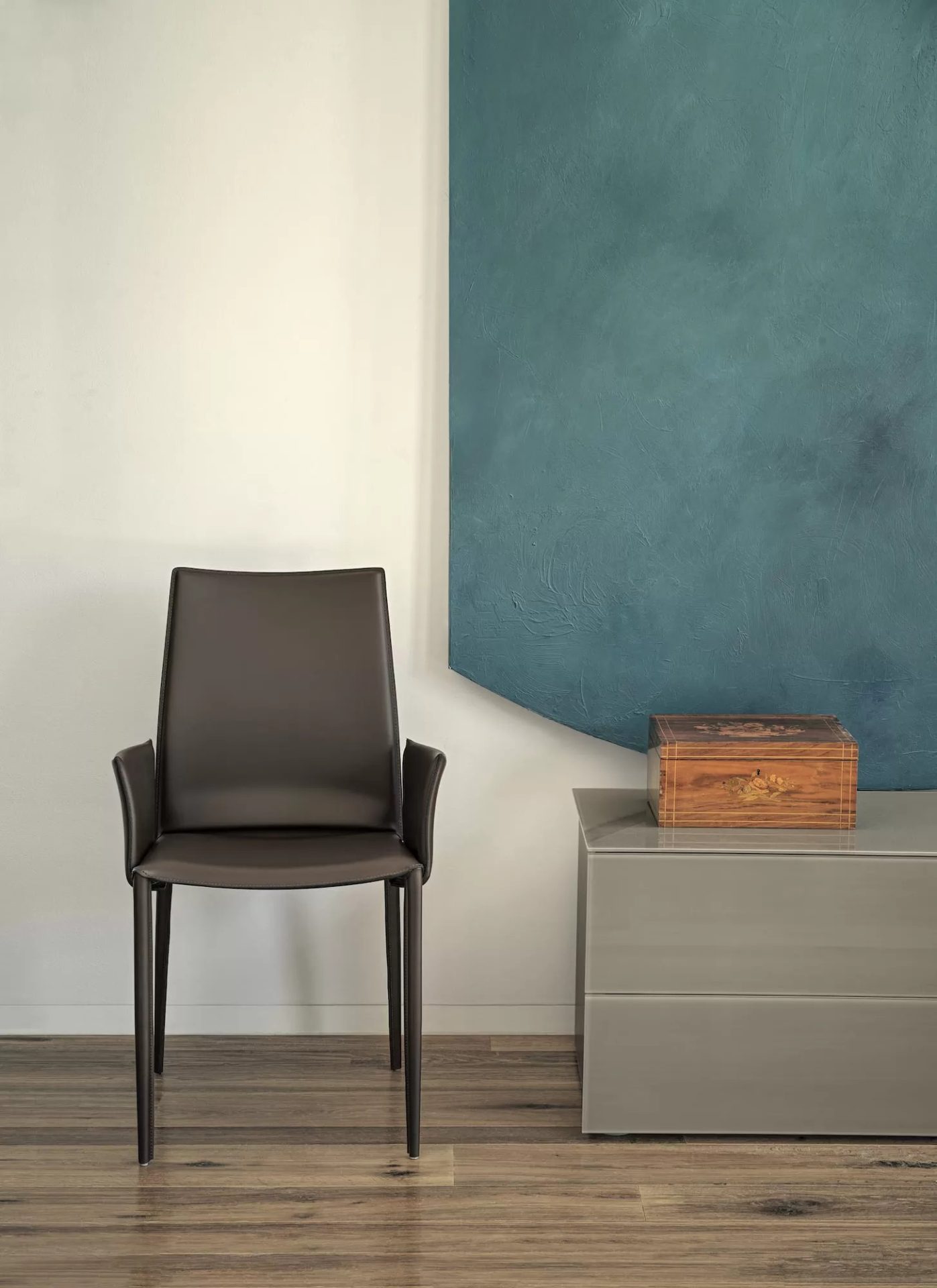 Chair and armchair with Metal frame, completely padded and upholstered.