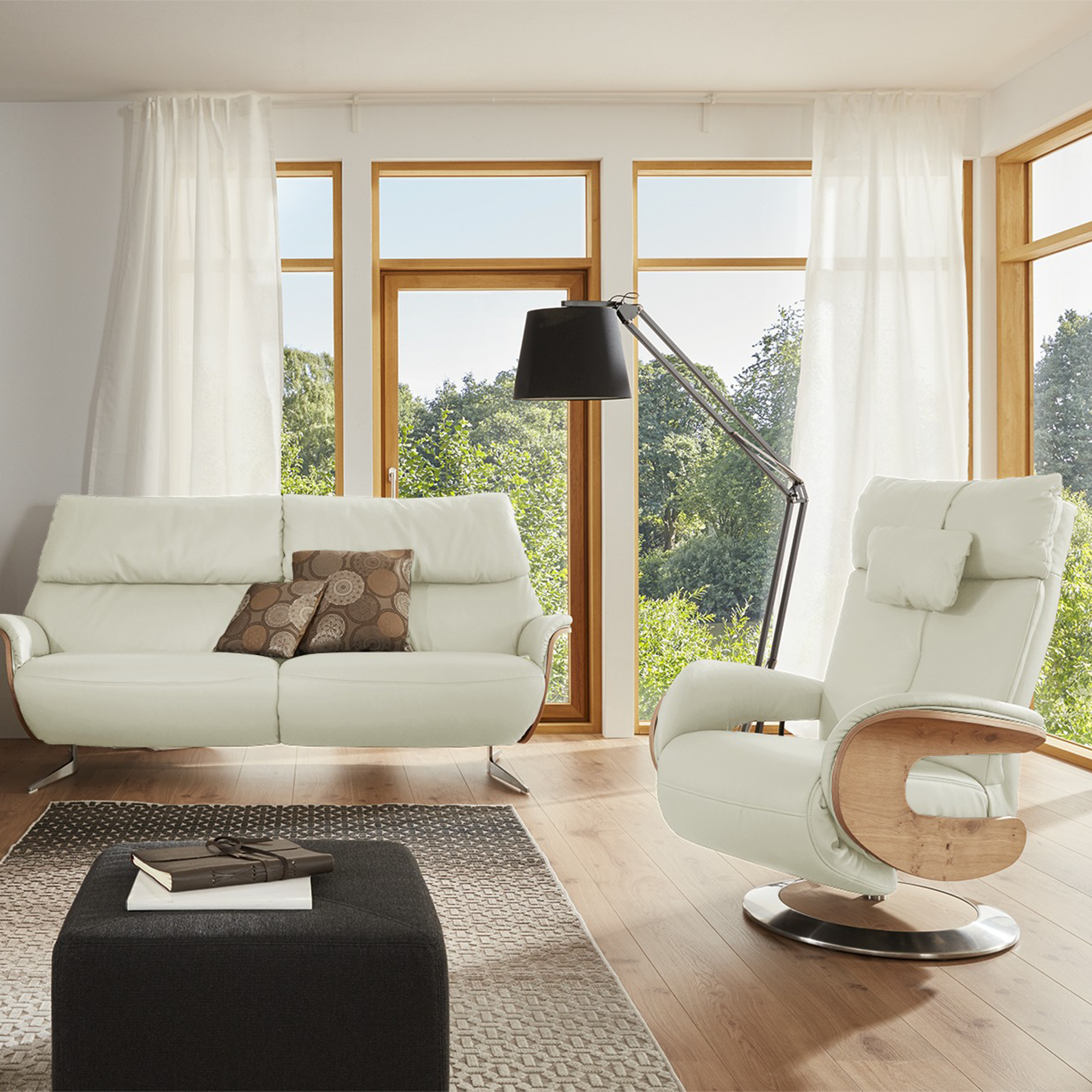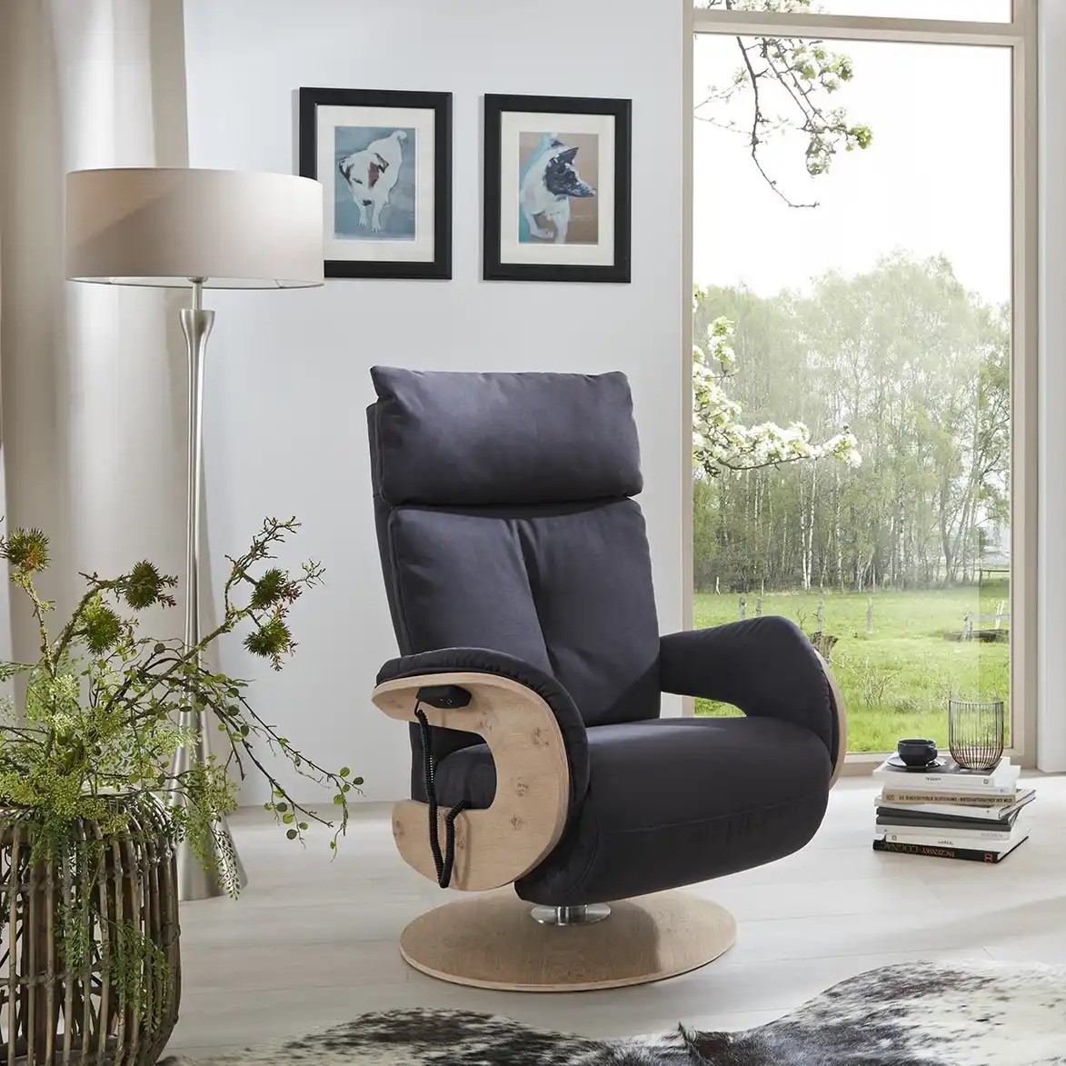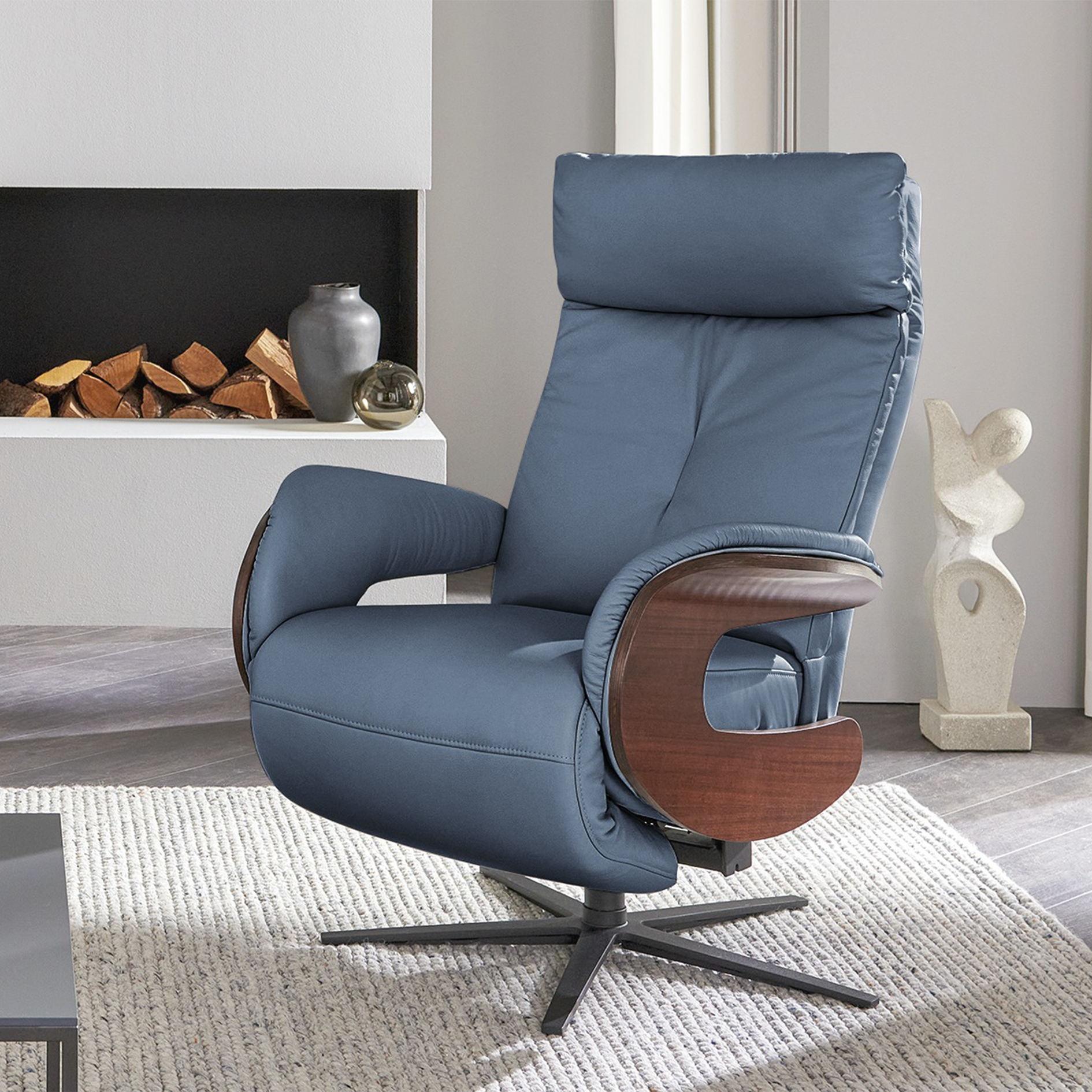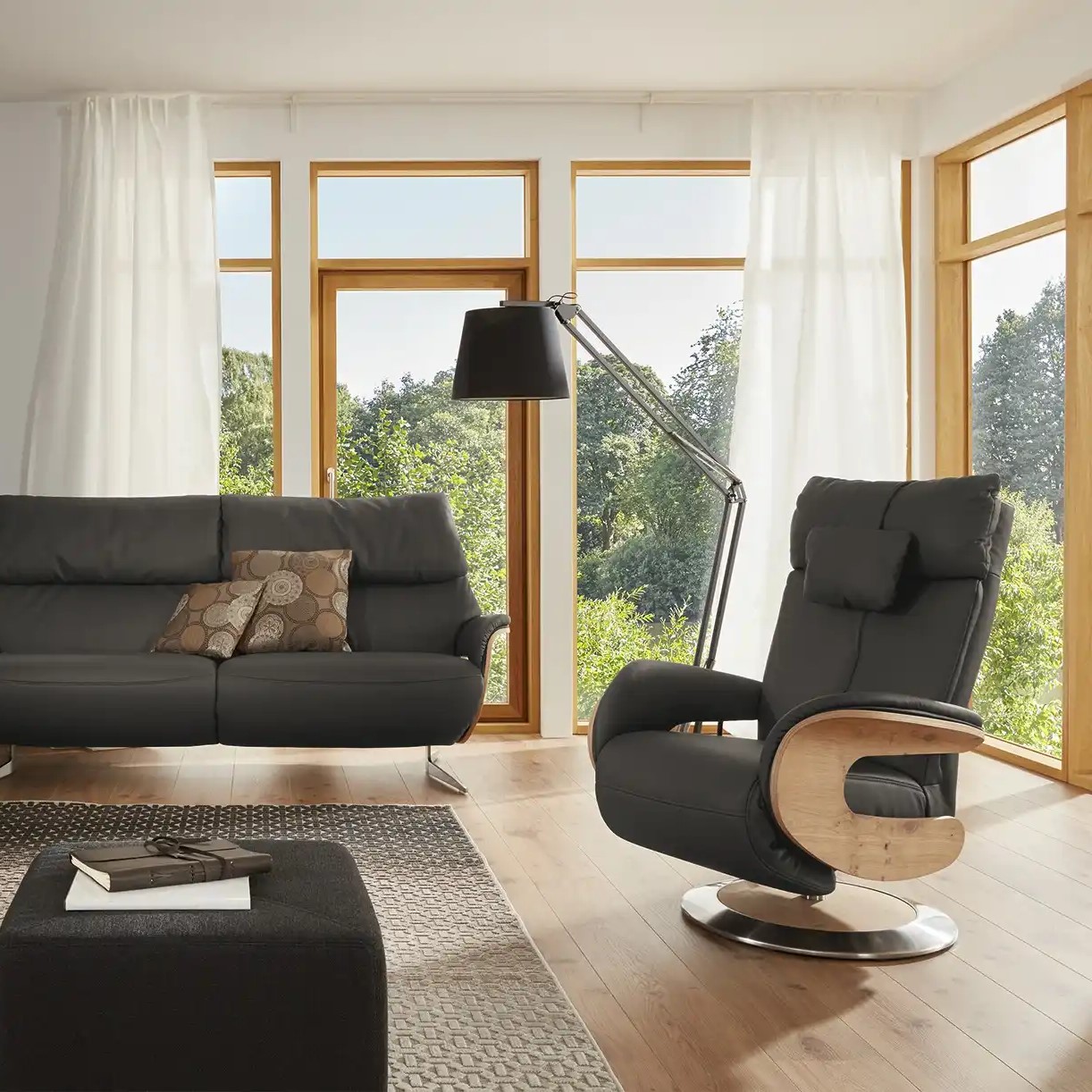 - Armrests with solid wood exterior
