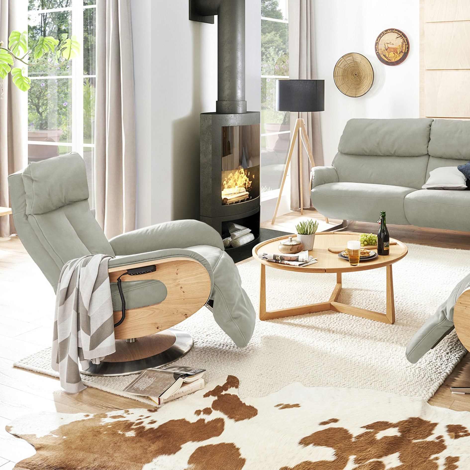 - Swivel base made of solid wood and stainless steel