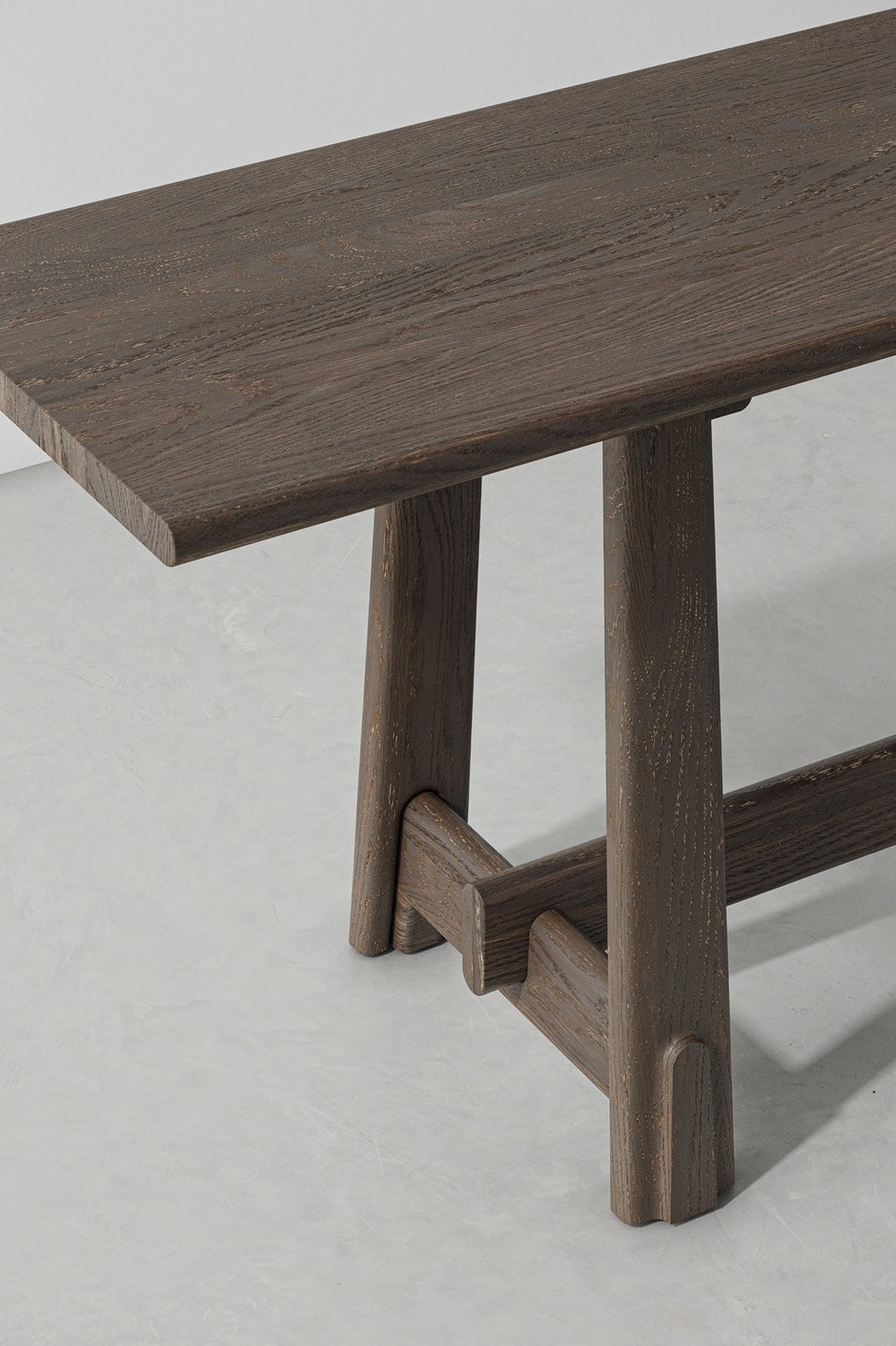 Drawing inspiration from the utilitarian aspects of traditional Asian architecture, the Odette Console Table stands for both function and form. Through its refined engineering, the design places emphasis on precise detailing, evoking the illusion of beams pushing outward from the legs.