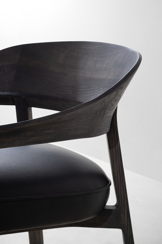 Colette Chair offers an abstract reference to the Vietnamese traditional script and a love letter to the craftsmanship of timber. Its sweeping backrest forms a collar that’s instantly distinctive and inviting. Extended to ridges of the armrests and their rounded ends, the frame provides ample support for ease and comfort, lending the collection a level of formality and sophistication in any space.