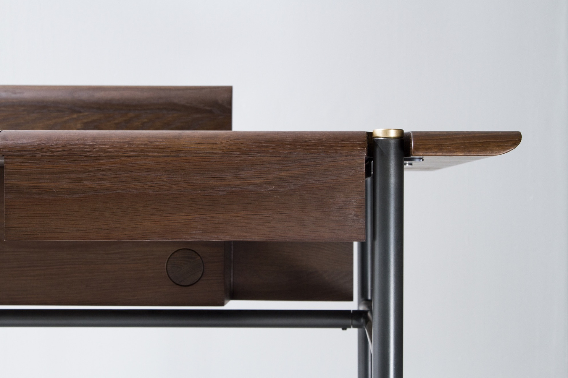 Standard Finishes: Oak top/ Blackened steel legs/ Brass