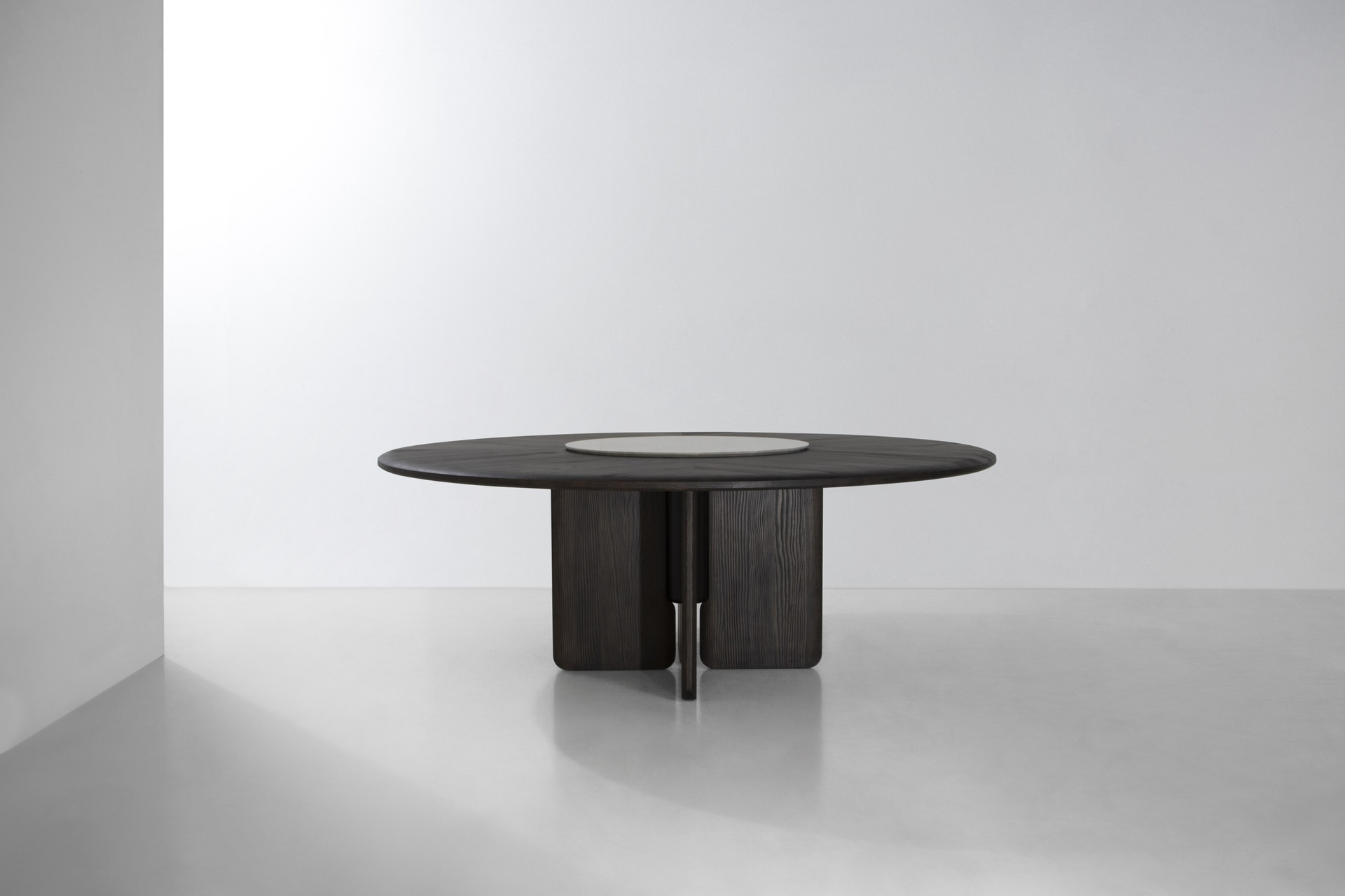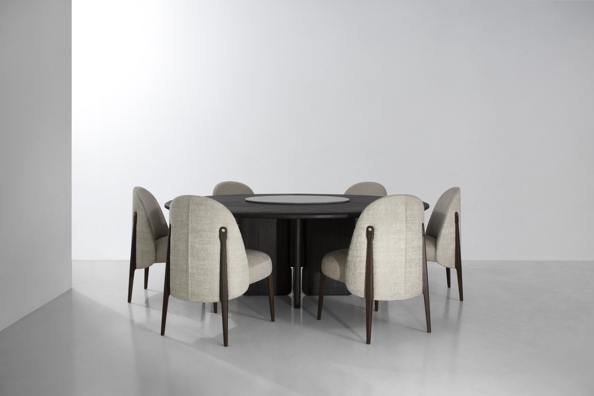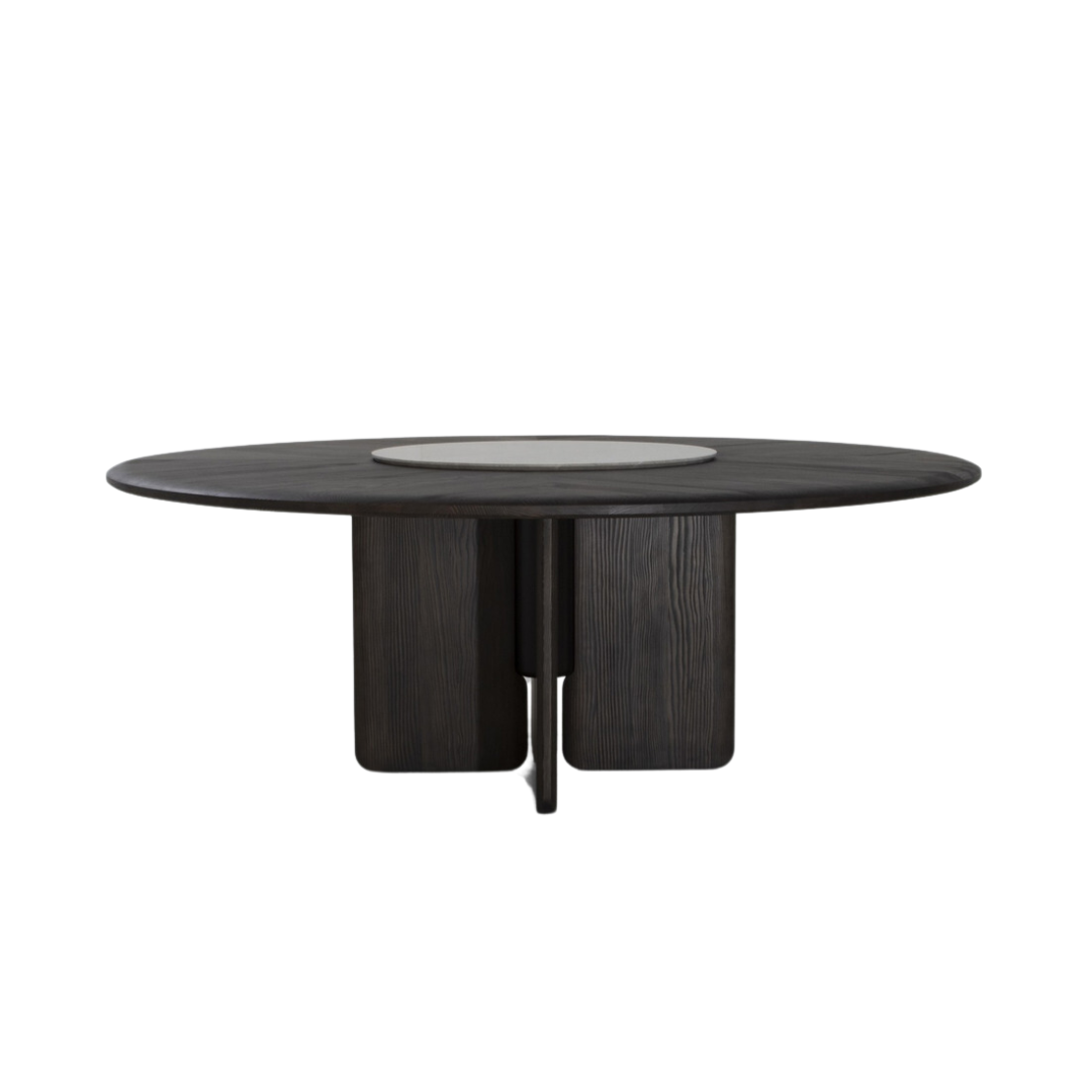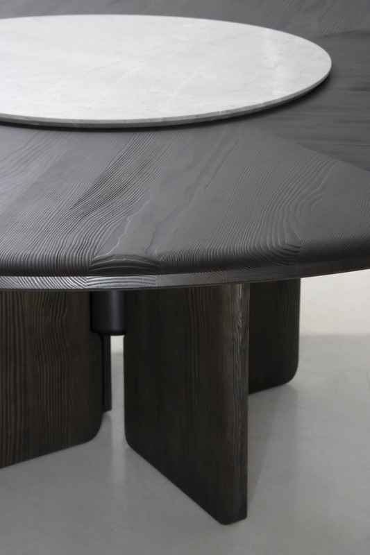 Faifo was the former moniker of Hội An, a city in the central region of Vietnam famed for its well-preserved Old Town District that once served as a prosperous trading port in Southeast Asia. This collection of dining tables is inspired by the city’s unique blend of cultures far and wide, especially countries from the Far East. The round tabletop, with a complement of the Lazy Susan made of natural marble on its largest variation, is a tribute to gatherings and conviviality surrounding traditional dining tables. Featuring triple or quadruple wings of legs for flexible seating arrangements & spaces, the Faifo’s hand-finished treatment of timber invites elegance, tactile comfort, and elevated dining experiences.